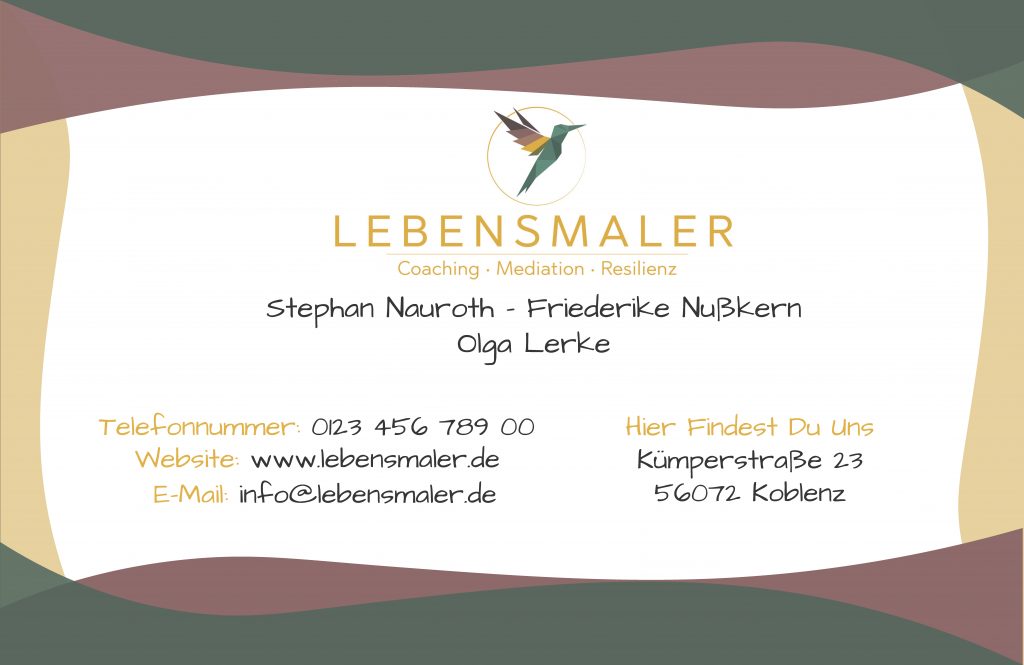 Die Lebensmaler führten einen Kurs für Hybrider durch und benötigten eine ansprechende Visitenkarte, die ihre Werte und ihr Angebot repräsentiert. Ich entwickelte ein modernes, freundliches Layout mit harmonischer Farbgebung, individuellen Formen und einem klar strukturierten Informationsaufbau. Besonderer Fokus lag darauf, das Logo und die Markenfarben stimmig einzubinden und den sympathischen, persönlichen Charakter der Lebensmaler visuell zu transportieren.