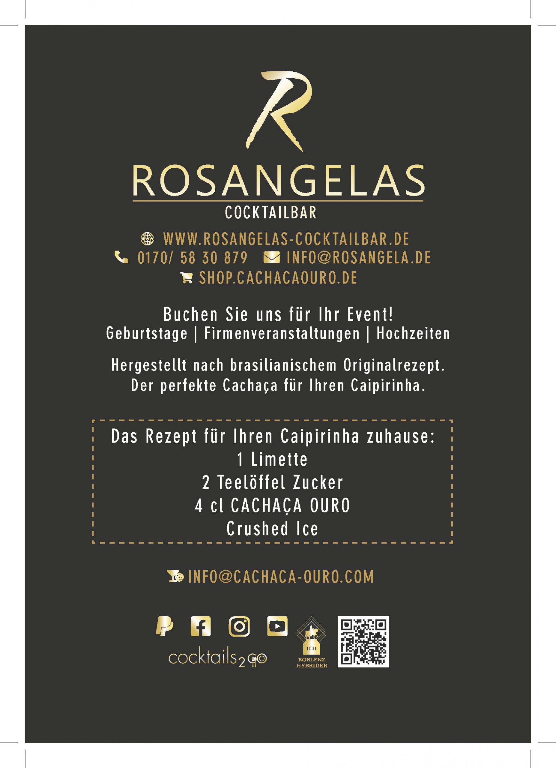 Während meines Praktikums bei Hybrider war ich verantwortlich für die Gestaltung eines Flyers für Rosangelas Cocktailbar. Ziel des Projekts war es, eine kompakte und stilvolle Werbebroschüre zu entwickeln, die nicht nur die Leistungen und Kontaktdaten der Cocktailbar kommuniziert, sondern auch optisch ansprechend und markenkonform gestaltet ist.