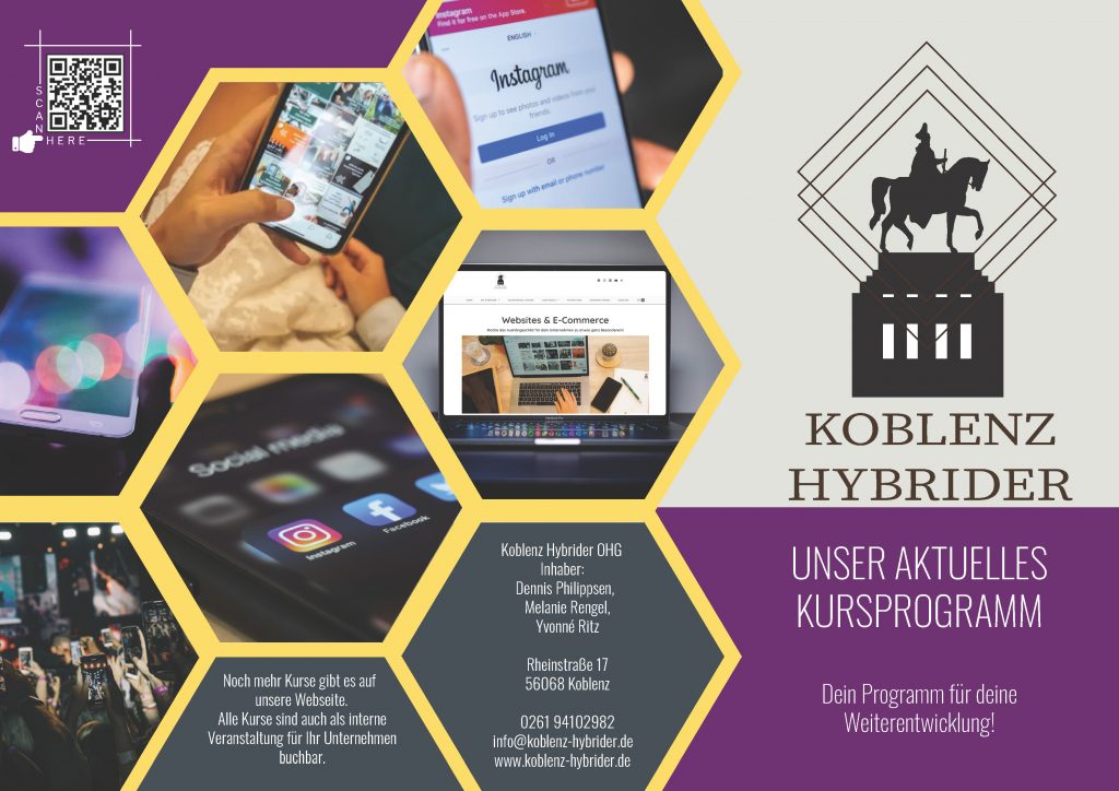 Während meines Praktikums bei Koblenz Hybride e.K. war ich aktiv an der Gestaltung verschiedenster Printmedien beteiligt und konnte meine Kenntnisse im Bereich Design für Marketing und Messeauftritt vertiefen.