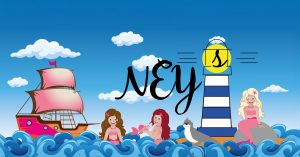 - eine Szene mit Meerjungfrauen, Leuchtturm und Seehund (Mädchenmotiv)